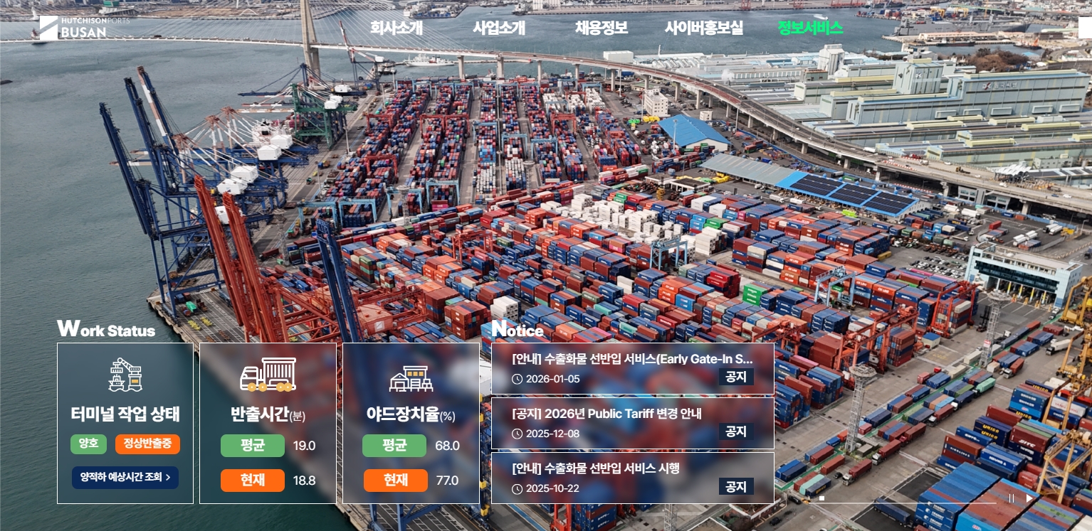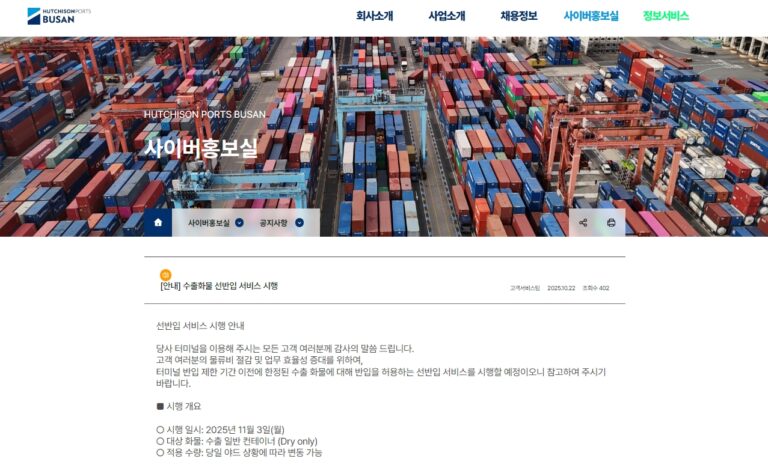 [부산] 허치슨 터미널 수출화물 선반입 서비스 시행 (2025.11.03 부터)